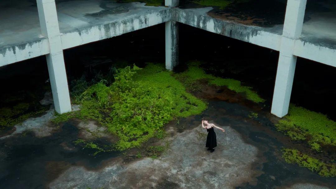 再次回到现实空间,废墟般的建筑中生出了绿意,舞者在建筑与自然之间流动,舞姿变得柔软而坚定。她完成的不仅是身体的平衡,更是向内寻求,找到了内心的平衡与真正的自我。