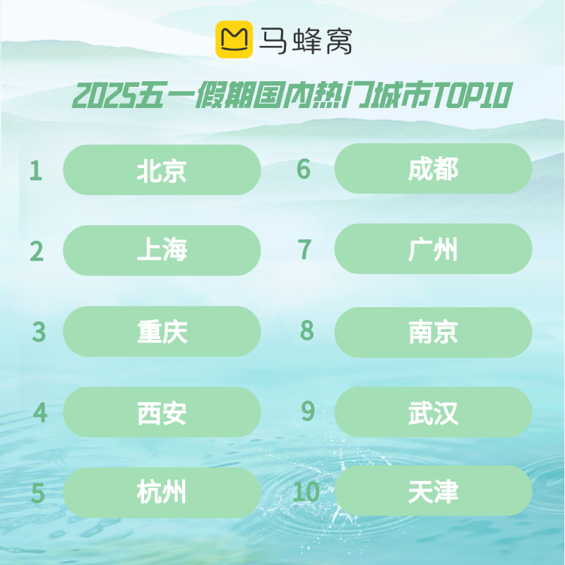 北京、上海、重庆、西安、杭州、成都、广州、南京、武汉、天津位列国内十大热门城市前十。除传统知名景点外,演唱会、音乐节、漫展等文化活动成为目的地热度增长的新引擎。北京超级草莓音乐节、元气森林音乐节,上海超级芒果音乐节,武汉仙人掌音乐节及四川崇州迷笛音乐节等活动,不仅吸引乐迷跨城“打卡”,更带动目的地旅游相关消费激增。天津在众星云集的“泡泡岛音乐节”的带动下热度上涨266%,成功跻身国内热门城市前十。