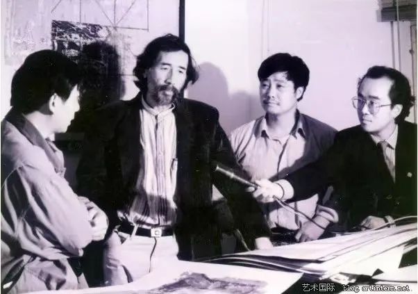 1996年时为中央美院版画系主任广军、副主任吴长江在江苏省海安县郑忠工作室参观指导并接受南通电视台的采访。