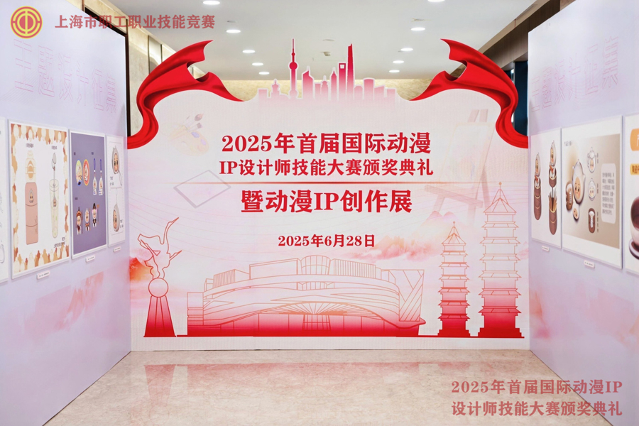 6月28日,2025年首届国际动漫IP设计师技能大赛颁奖典礼暨动漫IP创作展在嘉定区南翔镇环贸国际大厦举行。