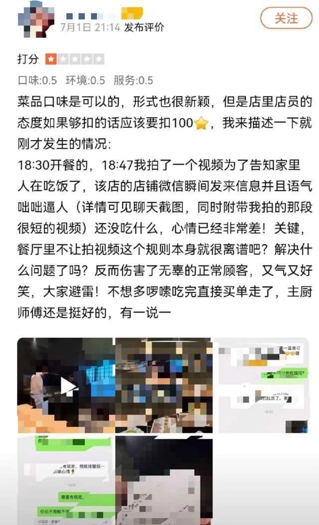消费者有权根据实际体验对商品或服务进行评价,只要不捏造事实,恶意诋毁,自然可以畅所欲言。餐厅制定繁文缛节时理直气壮,顾客一给出差评就立即投诉,这是不是也太“双标”了。让人不禁想问:这样的餐厅究竟是谁在消费?如此傲慢的习气又是谁惯出来的?