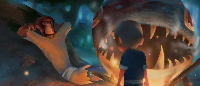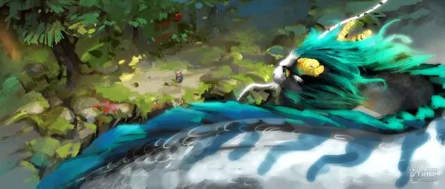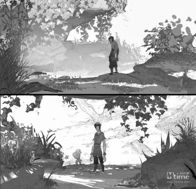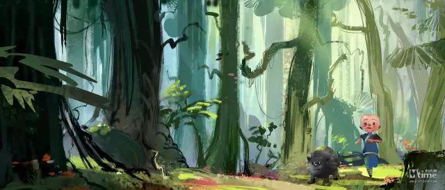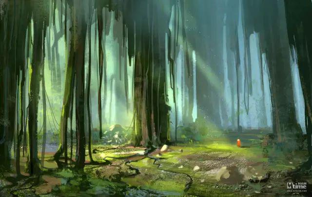 导演点评:3D场景太写实会显得生硬,所以后期制作了很多灯光雾化效果,形成体积光源。这是我们在前期就考虑过的,希望整个环境里有大气的效果。在画这张概念图时,首先我希望里面的东西是真实的,但同时树的大小,光的感觉比现实世界里要夸张。