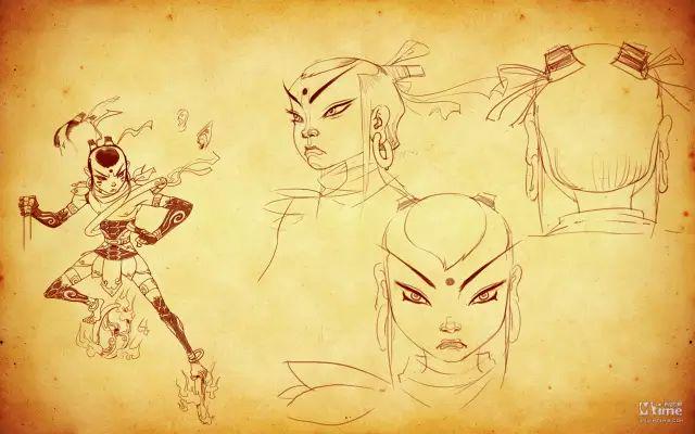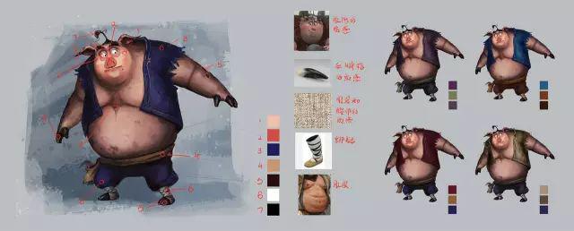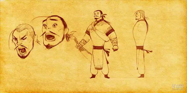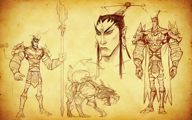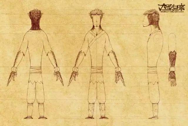 导演点评:这张悟空三视图是建模的基础,是给建模师看的。这张概念图上没有太多细节,你想象不出他动起来是什么样子。此外,这张图是单独的悟空,其他角色也需要画这种比例图,然后所有角色放到一起来一张全家福,标好比例,以确定各角色的相对大小。