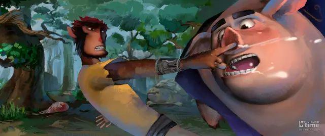 导演点评:因为悟空是火眼金睛,因此设计了双眼发金光的效果。而且角色在暗部或者背光时,一定要把眼睛提亮,这样才会很酷。3D动画如果完全写实,你会觉得他的眼睛没有神,就是两个白色,所以成片中我们做了眼部亮化的处理,但反差没有这张概念图这么大。