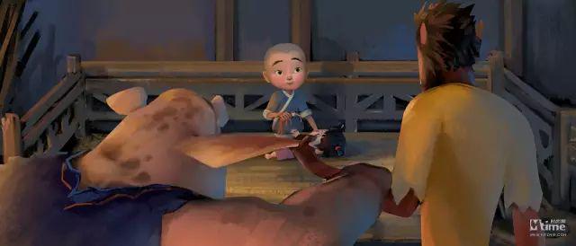 导演点评:江流儿的头发会随着时间推移变长。这是个特别好玩的细节。在长安城和他师傅法明在一起时,他刚剃过头,影片后半段就有些头发了。孩子的头发长得很快。人不同位置的头发生长速度不同,图中可看出他前面刘海处的头发长得稍微快些。