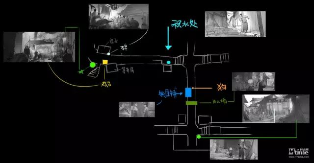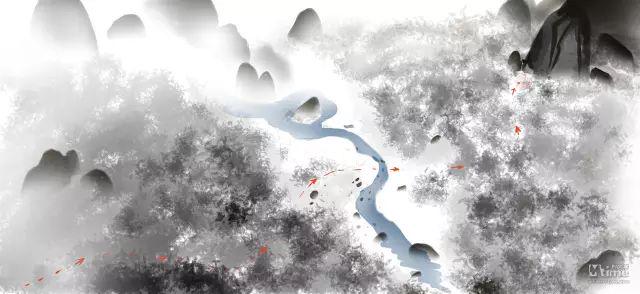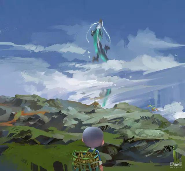 导演点评:这张概念图的作用更多是找寻场景的风格,不需要颜色特别丰富,主要是考虑构图,还有画面元素是否协调,比如中国画的山水应该是什么样的?它和写实的树木是否能搭配在一起?如果连风格都有问题,就没有必要画的更细,以免浪费时间。