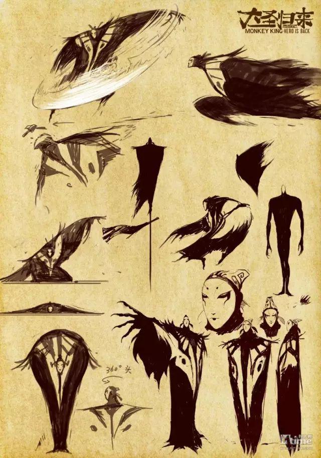据了解,当年《大圣归来》十多人的概念设计团队,创作了这些概念美术图,后来在制作动画阶段按需陆续补画了更多概念美术图,尤其是场景方面。