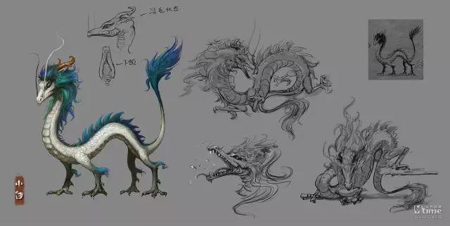 导演点评:这张设定图中的白龙其实已经和成片有很大差别了。左侧有颜色的这个龙还是概念早期阶段的,大概只是个颜色方案而已。而至于成片中的龙,在制作时我们参考了九龙壁和中国传统中很抽象的龙,希望它的脸型和轮廓有一点抽象的感觉。